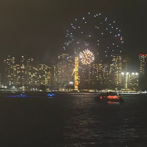 Having a drink in hand while listening to music and watching fireworks from a great spot is the best!