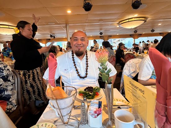 ワイキキから送迎付きで移動もラクラク。会場のハワイ・カントリークラブに到着すると、まずはゆったりしたハワイアンミュージックに迎えられ、気分が一気に高まりました。料理はローカル感たっぷりで、どれも美味しくて大満足。フラダンスのショーはとても優雅で、思わず見入ってしまいました。