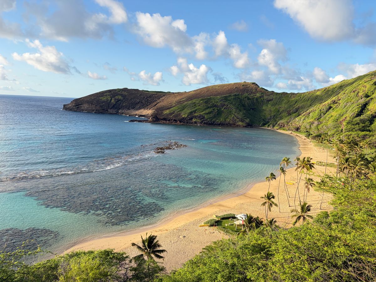 ハナウマ湾で初めてシュノーケリングを体験しました。海の透明度がとても高く、色とりどりの魚たちがすぐ近くを泳いでいる様子を見ることができて、本当に感動しました。最初は少し緊張しましたが、波も比較的穏やかで、安心して楽しむことができました。自然が大切に守られている場所だということも実感でき、とても貴重な体験になりました。ハワイの美しい海の思い出として、心に残る時間となりました。