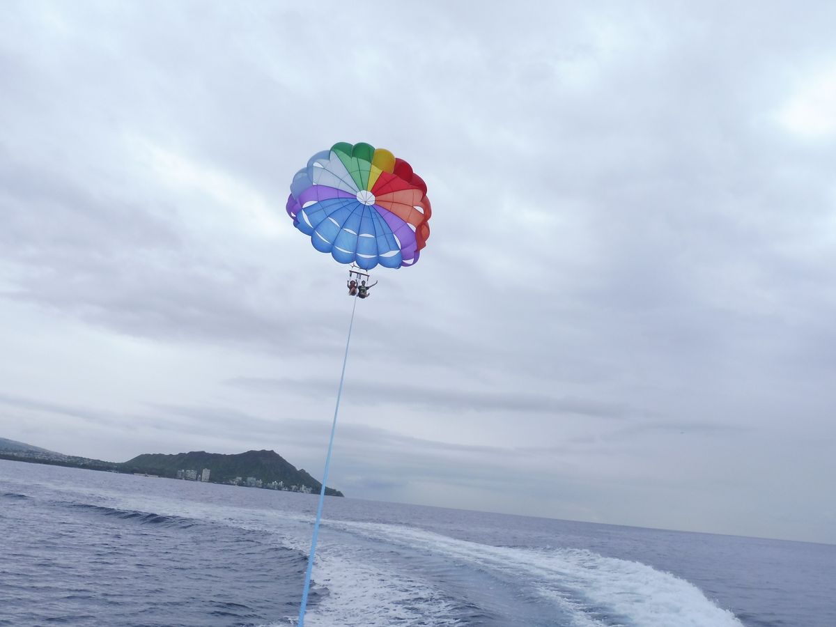 人が少ない分、メインのパラセイリングものんびり出来ていたような気がします。高くて怖かったけど、結構長時間飛べていた気がします。