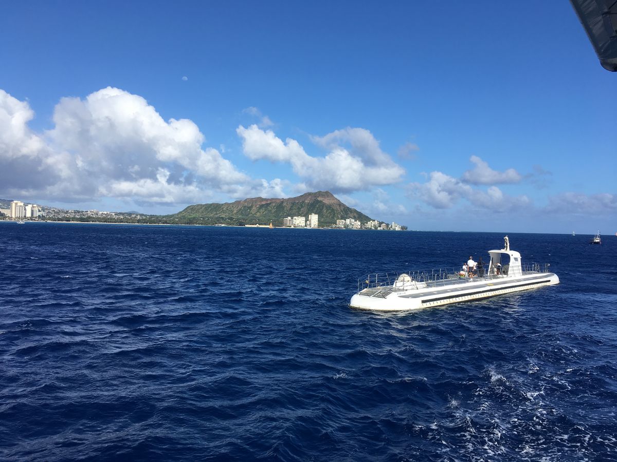 今回はシェラトンワイキキに宿泊していたので待ち合わせはクイックシルバーのブルートロリーの乗り場とわかりやすい場所だったのですが、いくら待っても迎えの車がなく、、そのまま30分経過、、、。それっぽい車に、不慣れな英語で確認を取るも別の会社だよと断れるばかり。さすがの旦那もイライラが募り、今日はもう仕方ないからホテルに帰る!!と一点張りでどうしたらよいか分からず、確認用の電話番号がメールに記載されているものの、近くに公衆電話すらなく、いったんホテルにもどり、日本語カウンターに相談し、そこから電話をかけてもらい、やっと、送迎が遅れているということがわかりました。遅れているならメールでも連絡がほしかったです。なにも知らなければもう来ないのかと思い、仕方ないから帰ろうと思っていたところでした。送迎の車の中ではムスっとする旦那と気まずい空気。他に日本人の女性2人と同乗し現場へ!着いてからは私たち待ちだったのか、外国人の旅行客が何名かわいわいと待っていましたが、英語も話せないので謝ることもできず、、てゆうか遅れたのは私たちじゃないので、運転手からとか一言あればいいのに何もない。
