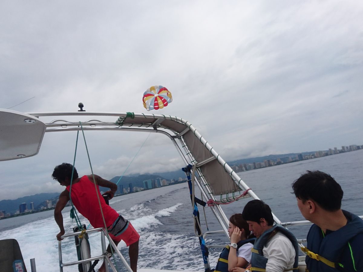 船からは雨上がりの虹も出ていて、虹とパラセーリングのとても綺麗な写真も撮ることができました!同じ旅行者同士、防水カバーをかけてスマホでとりあえば写真も買わなくても良いと思います!次行った時はほかのアクティビティもぜひやってみたいとおもいましたが、wifi の環境下でラインなど、連絡を取りあえる手段がひとつでもあればよかったです!