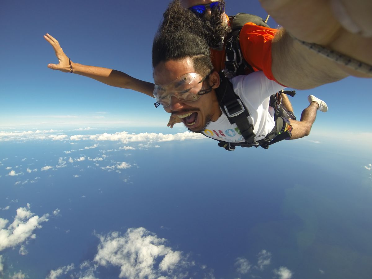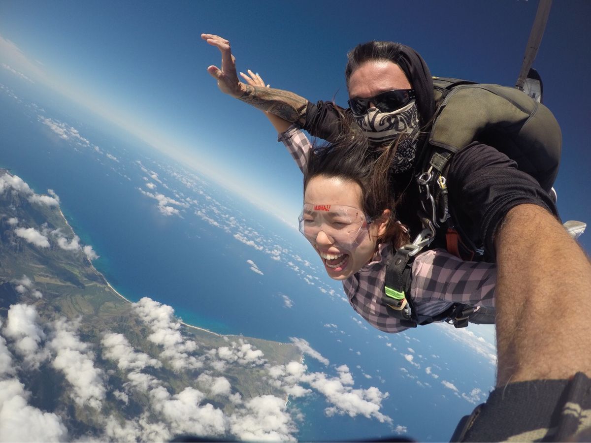 Skydiving was something I had always wanted to try at least once in my life. I'm glad I was able to experience it in Hawaii. The waiting time was shorter than I expected, which was nice. When it was time to jump, it happened so quickly that I didn't have time to feel nervous or scared. Once I was in the air, I was just amazed by the beautiful scenery. It ended in no time, but it was a lot of fun and a great experience.