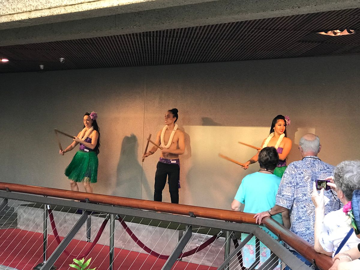 The hula show was powerful, with the female dancers being very graceful and beautiful, while the male dancers were strong and cool. The fire dance added an extra level of excitement.