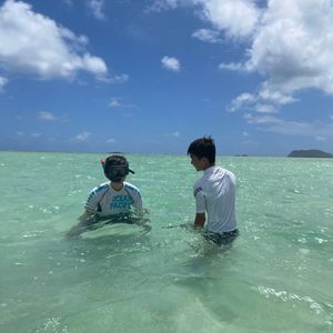 After that, we paddled steadily towards the coral reef at Lanikai Beach. We borrowed snorkeling gear, left the kayak on the beach, and went snorkeling. I had put my sunglasses, shoes, and boots in a mesh bag for snorkeling, but since I didn't secure it properly, some of the items floated away. I found a few later, but remember to close the bag tightly. This took about three hours.