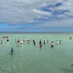 I thought I could take photos like in a guidebook, but the sandbar was underwater! It seems that it's rare for it to be in a guidebook-like condition. However, I had a great time with activities like volleyball, snorkeling, sea turtle watching, and a hamburger lunch on the boat!