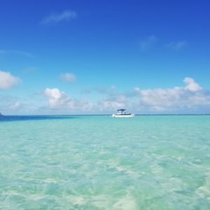 Although it was unfortunately rainy, the staff created a fun atmosphere and kept the spirits high. The sandbar, even under cloudy skies, had shallow areas with different colors of seawater, creating a unique sensation that you don't find in Japan. I was able to see many sea turtles, and while snorkeling, I saw plenty of coral reefs and fish. The BBQ hamburger was incredibly delicious, truly embodying the experience of having a hamburger at an American BBQ. I would love to go back on a sunny day.
