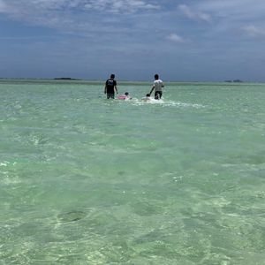 At the sandbar, we played beach volleyball and practiced snorkeling.