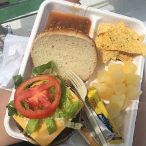 自分でパンにお肉とチーズと野菜を挟んで、、、ビーンズとチップスもあって、美味しくいただきました。