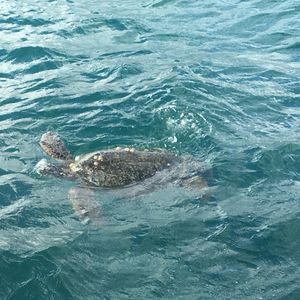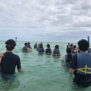 The weather was a bit cloudy, but the sandbar was still very beautiful. It was fun to see several sea turtles. It was disappointing that I could hardly see any fish while snorkeling, possibly because it was after the hurricane.