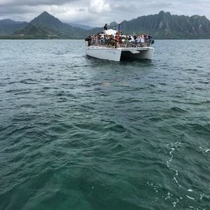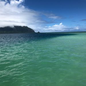 天使の海すごく興味が有り参加しました。口コミ情報や雑誌やネットなどの説明を見て朝早い方が潮引きが良いと知り朝早い時間帯で参加しました。朝起きてかなりの晴天でワクワクしながら船乗りばまで送迎してもらうなかなんだか天気が怪しい感じ。雨は降りそうもないけど雲がかなり多くなってきた。状況が変わらず船に乗りスポットまで出航!送迎車から船の中もずっと一緒に乗っていた日本人(女性)のガイドさんは、とても分かりやすい説明に非常に明るいテンションでみんなを楽しく和ませていました。まず亀の出るスポットで船のエンジンを止めてウォッチング。本当の目の前には現れなかったものの、結構亀が出現しました。みんな興奮して写真を撮っていました。次にサンドバーに向かいました。最初にも言ったように雲が多かったのでちょっと肌寒い感じの中サンドバーに到着!しっかり情報をあてにして朝の参加にしたのに残念。潮引きがあまく腰位迄の深さでした。足首程度の水位の期待が外れて晴れ間がないから寒いし少し濁って見える感じでした。なのでシュノーケルも楽しさが半減でした。時期が悪かったのかハワイ島の噴火の影響で風に流れて雲が多く辺りが白っぽい感じになってしまっているそうです。ジェラシックワールドの撮影された山があったりで、これが晴天だったらどんなに綺麗なんだろう!体験談の写真にのような素晴らしい景色なんだろうと悔やんでしょうがない気持ちでいっぱいでした。今回は軽食付きでサンドイッチを頂きました。普通に美味しかったです。ドリンクはコーラ、スプライト、紅茶、お茶などが飲み放題でした。これから参加する方には運良く晴天でであれば最高な時間を過ごせるよ!としか言えません。現地の方に聞いても朝早い方が潮引きが良いと言っていましたので、朝早い方便を選んだ方が良いかもしれません。天気は願うしかありません。いつかまた最高の晴天で参加したいです。