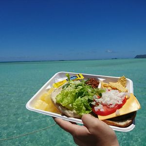 We participated in a sandbar tour for the first time as a family of three. It was the only day of our trip that it rained all day. Despite the unfortunate weather, the staff communicated in Japanese and made us feel at ease. The water level at the sandbar was about waist-deep, but we had a great time playing volleyball and other activities. We also encountered sea turtles and manta rays. The BBQ cheeseburger for lunch was even better than we expected! There were seconds available, but one was filling enough. Drinks like cola and iced tea were free. On the way back, we experienced some engine trouble with the boat, but we were towed back safely by a helper boat. The staff explained the issues thoroughly, so we were able to enjoy the experience without any worries.