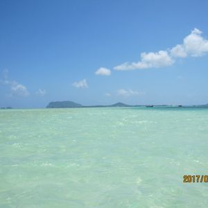 When we arrived at the sandbar, it started to rain, and we couldn't see the sandbar in its original form. However, compared to the surrounding sea, the color was clearly different and very beautiful.