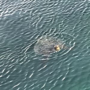 I was so excited when I finally saw wild dolphins from the boat. They were jumping around in large groups, and occasionally they even showed off twist jumps like in an aquarium show, which was amazing. Once I got into the water, I only saw a pod of dolphins once, but a huge group swam right underneath me while I was floating! I brought my iPhone in a waterproof case, but I couldn't operate it well underwater, so I couldn't take any photos of the dolphins. If you want to take pictures underwater, I definitely recommend using an underwater camera. I encountered sea turtles several times. They swam right up to where we were floating, and I was worried I might accidentally touch one.