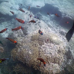 個人的には石垣島のカヤマ島ツアーの方がサンゴも魚も綺麗でした。