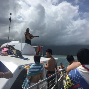 Eating burgers for lunch under the sun was the best! You could also choose your favorite mini chips. On the boat, the crew performed hula dances and let us go out on the captain's deck, providing great entertainment! Even as a solo traveler, they welcomed me as part of the 'ohana, which was reassuring. On the way back, they played the photos and videos taken that day, allowing us to relive the memories (they are also available for purchase).