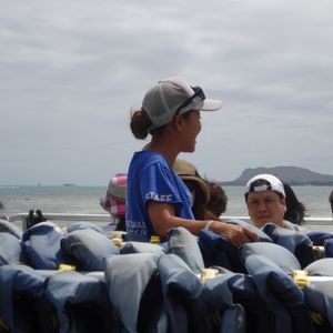 The shuttle bus picked us up at our accommodation, Hyatt Regency Waikiki, so the whole family participated. We signed up thinking, "Half a day on a boat sounds nice," but it was amazing!!