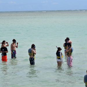 帰りは水着のままタオルを羽織って帰りましたがバスの中で冷えきります。ロッカー、更衣室はありませんので、多目にタオル持っていった方が。 軽食中に余っていたものを処分していました。参加者がおりてからにしてほしかったです。 水位はひざ下位でした。砂洲は10/月位らしいので、当たった方は羨ましです。 スタッフさんは盛り上げてくれたり、対応は問題ありません。シュノーケリング縦に並んで大勢で泳ぐのは大変ですが小さな魚がたくさん見れて可愛かったですよ!!