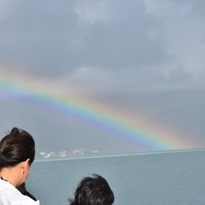 The weather wasn't very good in the morning... it was cold (~_~;) But I was glad I could see a beautiful rainbow‼︎ A wrap is definitely a must-have.