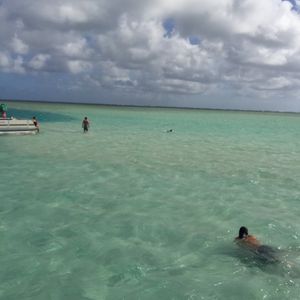 After leaving the harbor, we headed to the "sandbar," about 15 minutes offshore, with white sand (from coral) and a water depth of around 20 cm, covering an area of about 200 square meters. Since it's located offshore, it was a wonderful and unique experience to "walk on the sea," and our family was very satisfied!