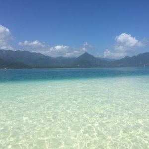 When I stood on the sandbar, it was very beautiful! However, unfortunately, it seems that the sea was unusually rough since the day before, and the water was murky, making it hard to see the turtles. The snorkeling was also cloudy, so I couldn't see many fish. (;^_^A