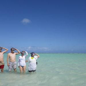 朝出て行くツアーに乗りました。ガイドさんは面白くて楽しめましたし、ウミガメもかなり見えました。朝は船を降りると腰ぐらいまでの深さがあり、少し歩いてサンドバーに。それでも膝上くらいまではありました。海はとても綺麗でした。
