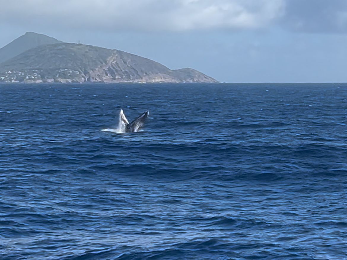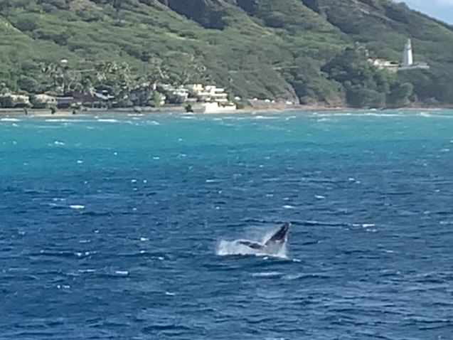 ホエールウォッチングに自信ありとのことでしたので、楽しみにして参加しました。万一見られなかった場合でも次回無料パスを頂けるとのこと。説明もわかりやすく、ザトウクジラは45分に1回海上に呼吸をしにくるとのことで、30以上回遊してましたが、中々現れず。今日はもう駄目かと諦めかけた瞬間、その時は突然やってきました。1頭目はベイビー、2頭目は大人のクジラで、ダイヤモンドモンドヘッドをバックにハイポーズ❣️