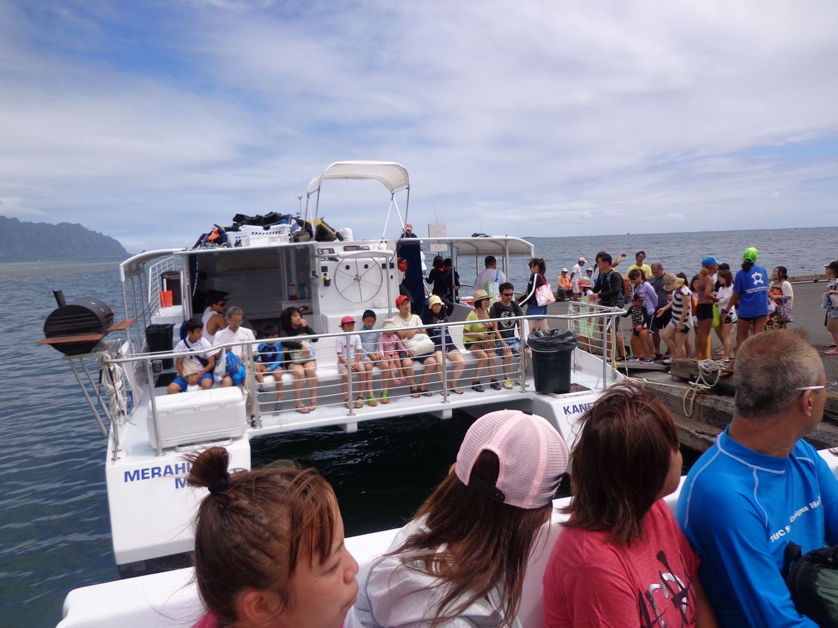 The guide who picked us up in the morning spoke suspicious Japanese. Inside the car, he explained everything in English without any warnings, and we arrived at the destination. Also, this guide disappeared halfway through the return bus ride. Well, putting that guide aside, at the local boat, we were properly attended to in Japanese. What was wonderful was that we had about an hour of sandbar, turtle watching, and snorkeling, so even my wife, who can't swim, had a great time snorkeling with a life jacket and a float. For lunch, we had hamburgers, which were very delicious—I wanted a second helping. Additionally, the crew here was very cheerful and greeted us with a loud "Aloha!" which lifted our spirits. The guide who picked us up in the morning played the guitar and sang during lunchtime, but it seemed like that was his job... (not really necessary?). In particular, the boats for Japanese and foreigners were separated, but the foreigners were smoking at the sandbar and had poor manners, which made me feel a bit uncomfortable. Overall, it was very good.