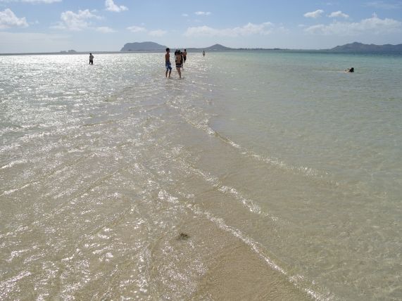この日は参加者が多く船が3船でていました。 船が出発して、沖合の海でウミガメをまず見に行きますが、運が良ければマンタと出会えるそうです。その後、サンドバーに向かいますが、シュノーケリングをするつもりもなく、ただサンドバーを歩きたかったので水着は持って行きませんでしたのでサンドバーまでの10~20mの距離は股下まで濡れました。すぐ乾くので無くてもいいかも知れませんが、水着は持っていったほうがいいですね、サンドバーに到着後、シュノーケリングをする人はサンドバーの外側の海でやりますが、サンドバーに残っていてもOKです 午前のツアーは短いのでサンドバーを時間ない歩いてもアッと言うまなので私はそちらをお勧めします。 景色は最高でした。