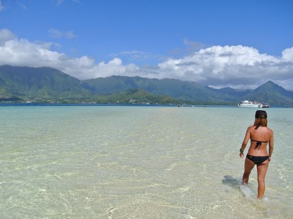 The sandbar has varying water depths depending on the time of day, so I think it's best to go during the times when the water is shallower. Additionally, one of my companions was quite prone to seasickness, but as explained, the waves in Kaneohe Bay are always calm, and we were able to finish the trip without much seasickness! Let's shout "Aloha!" loudly on the boat!