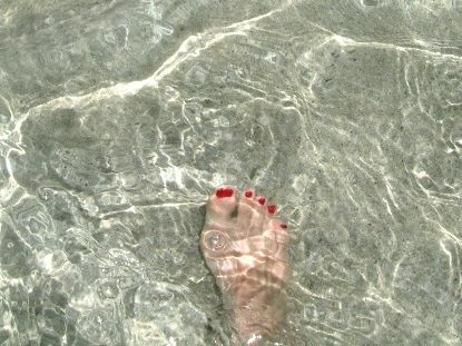 潮の満ち引きの関係で膝の下ぐらいの深さでしたが、天気に恵まれ美しい海を満喫する事が出来ました!