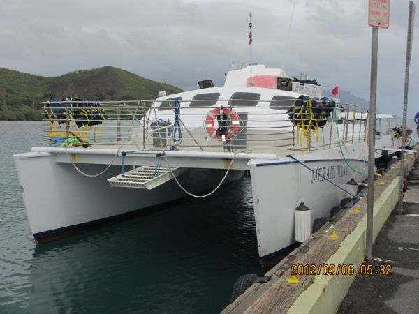 Ko Olina is a gorgeous area, very picturesque with manicured grounds and on the early morning tour it's just lovely to drive through here with the sun shining. First thing I was really impressed with was the Catamaran, it's very large and luxurious, I couldn't wait to get aboard! They make you take your shoes off before boarding and they store them for you until you return, you can tell this keeps the vessel from wear and tear... it was lovely inside.