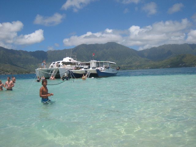 サンドバー、海の中にこんな浅瀬の砂浜があるなんて・・・とっても気持ち良かったです。船の中で食べたハンバーガーも美味しかったです。海亀ウオッチングもシュノーケリングも楽しかったです、まるで水族館の中に入って泳いでいる感覚です。またハワイに行く時はぜひ参加したいです。
