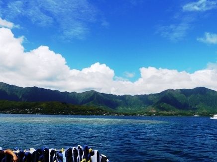 The sandbar is affected by the tides, so when I actually went there, the water reached up to my thighs, and I couldn't enjoy the beautiful sandy beach like in the photos. However, looking around, I could see the distant Kualoa Ranch and the endless blue ocean. It felt nice to be surrounded by nature, which was a refreshing change from the hustle and bustle of Waikiki. The malasada and the lunch I had on the boat were also delicious.