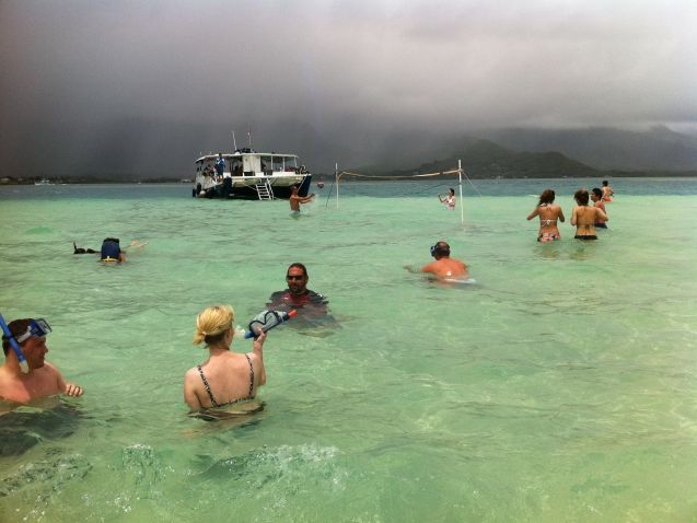 It seems that the weather around the sandbar can be unstable. When I participated, it was sunny and about 28 degrees in Waikiki, but Kaneohe Bay was cloudy with some rain. However, I was able to see the sandbar, so it was still a lot of fun.