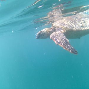 遊んでいる横を、ウミガメが通っていき、近くで見ることができました。