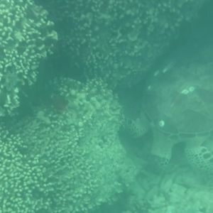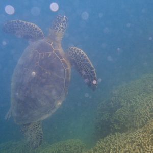 魚をみるためのシュノーケリング目的で行ったのですが、かなりの数のホヌと一緒に泳ぐことができました!
