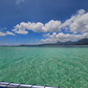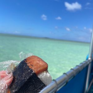 I made a reservation in Japan before departure without checking the tide table, but luckily, the water was shallow up to my knees, which was great. I wore my reef shoes from the room, and I stayed in them both on the boat and in the water. Additionally, due to my nearsightedness, I borrowed a prescription mask. Whether I could swim or use the snorkel was a different matter. I didn’t know how to hold the snorkel properly, and water kept coming in through the gaps, so I held onto a staff member's float who spoke Japanese, and we moved along together. I got used to it halfway through and was able to look underwater for longer periods. Every time we spotted a sea turtle, the staff member would say, "There’s a turtle," and I was able to see them about 7 or 8 times. Encountering many schools of fish and sea turtles was an emotional experience. My first time snorkeling, meeting sea turtles, and visiting the sandbar was a fun experience that I can't have in Japan. The spam was also very delicious. Thank you very much.
