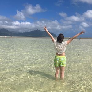 I came to Hawaii for my honeymoon. When you think of Hawaii, you naturally want to visit the beautiful ocean, so I was looking forward to the sandbar, and the water there was even more beautiful than I imagined! The photos taken at the sandbar with the mountains in the background turn out to be stunning.