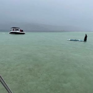 The sandbar was cloudy with occasional showers, making it not very beautiful, and it was cold with rainy weather. The snorkeling was a bit murky, and I didn't see many fish. The sixth day had bad weather, which was a bit disappointing, but the crew did their best to keep us entertained.