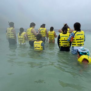 I had a very precious experience snorkeling at the sandbar for the first time, swimming alongside sea turtles. It was a bit cold because it was cloudy, and the beach wasn't visible, so I want to try again when it's sunny and during low tide.
