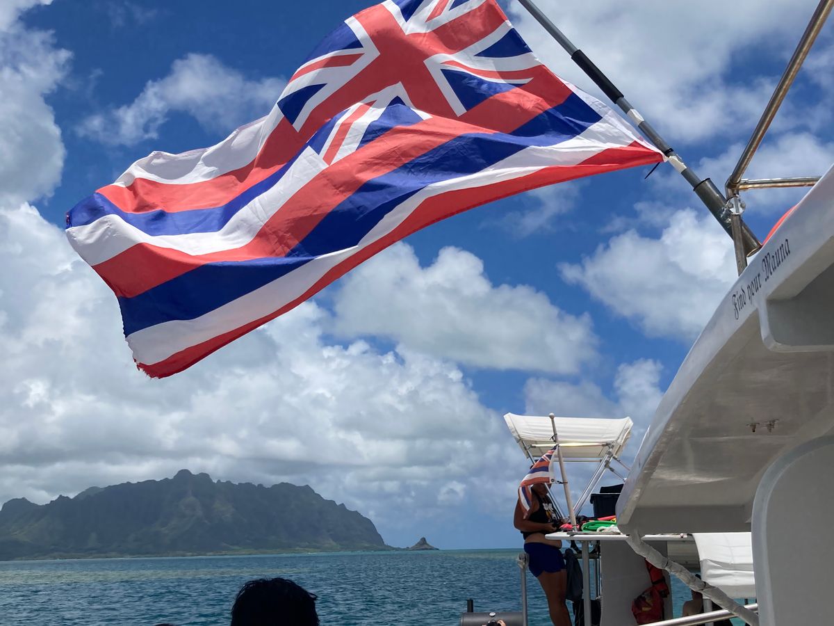 ワイキキのホテル近くで大きなバスにピックアップしてもらって1時間弱でHeei’wa(?)のハーバー(パイレーツオブカリビアンのロケ場所の一つだったらしい)に到着してカタマランの一つに乗船。ここから先は日本スタッフのユキコさんが丁寧に案内してくれて安心。まずサンドバーに到着して白砂の浅瀬でシュノーケリングの練習。後ろにはジュラシックパークの撮影で使われたクアロアランチやチャイナマンズハットが見えて、これをバックにユキコさんがバンバン写真を撮ってくれる。暫く遊んだ後はランチタイム。BBQ仕立てのハンバーガーは香ばしくて日光が降り注ぐボートの上で食べるの最高!食事の後ボートは海亀が見れるポイントへ移動。結構な数の海亀とマンタに出会えて、いよいよ最後のポイントへ。サッカーグラウンドほどの広さがある珊瑚の丘の周りをシュノーケリングするのは初めての自分にはちょっと勇気がいったけど水中には沢山の魚が見れた。ここには海亀の巣穴もあるらしいけど会えなかった。シュノーケリング終えて温かい飲み物をもらって帰港。振り返ってみるとあっという間だったけど、いろんな(しかも初めて!)体験ができて、海風にたなびくボートに掲げられたハワイの旗をなびかせる心地よい風と青い空を楽しめて最高!このツアーに参加して良かった‼︎