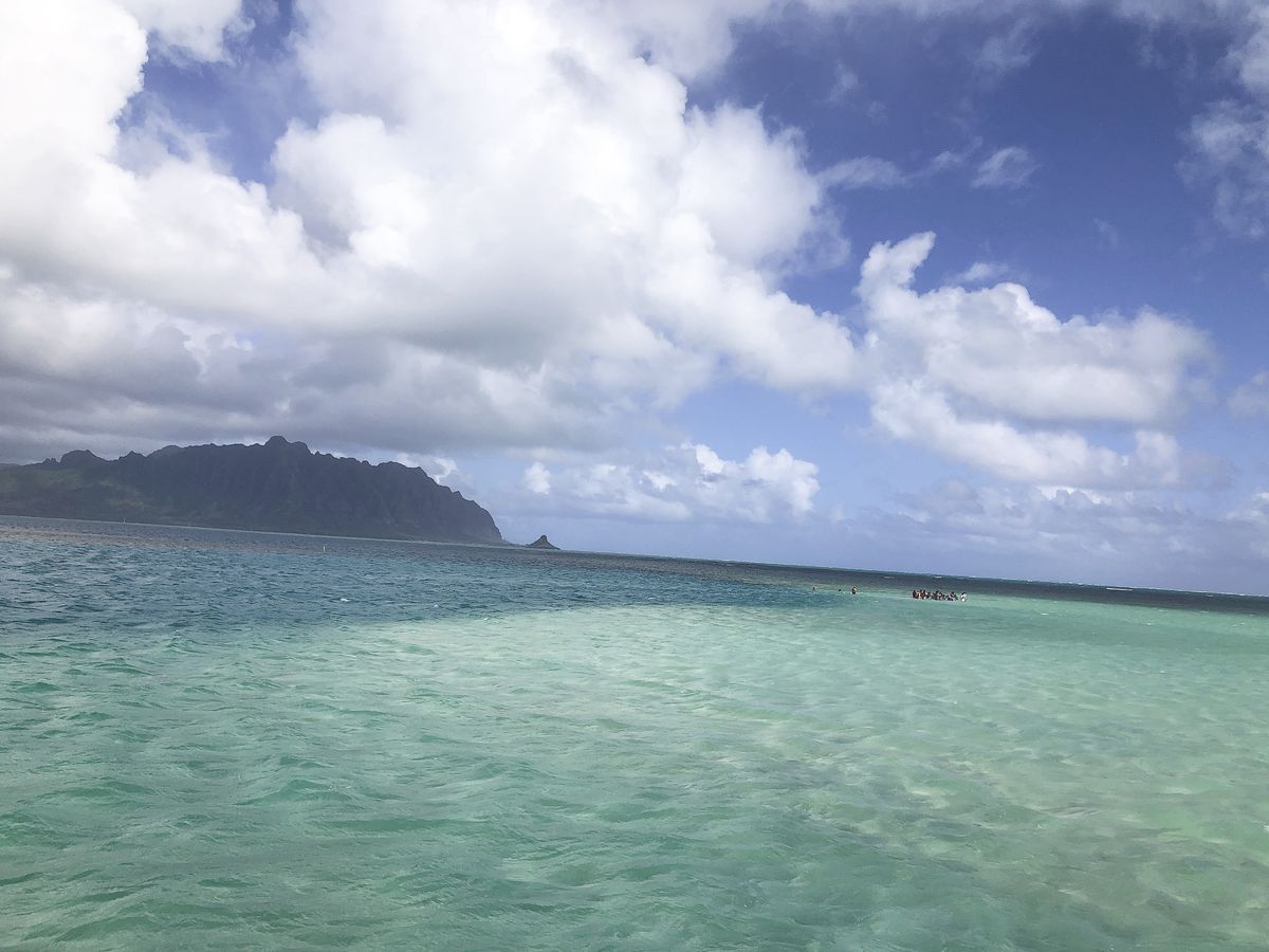 I checked the Tide Chart website to find the day with the lowest tide during my stay in Hawaii. It was supposed to be 0.2ft, but by the time we arrived at the sandbar, the shallow area was completely above the water surface, turning into a sandy beach! The sandbar is also said to be a power spot, so I took plenty of deep breaths.