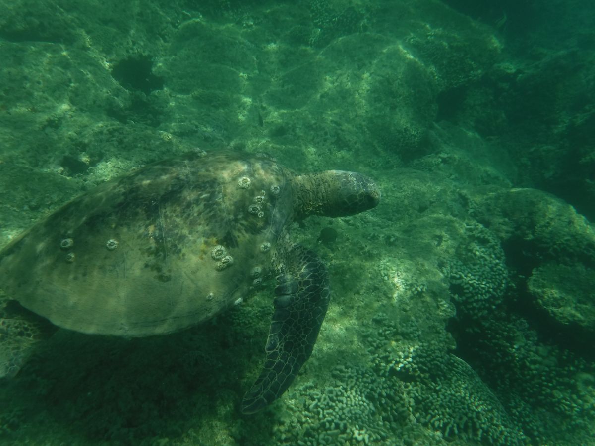 - I encountered sea turtles! Two were swimming, and two were under the coral reef while snorkeling.