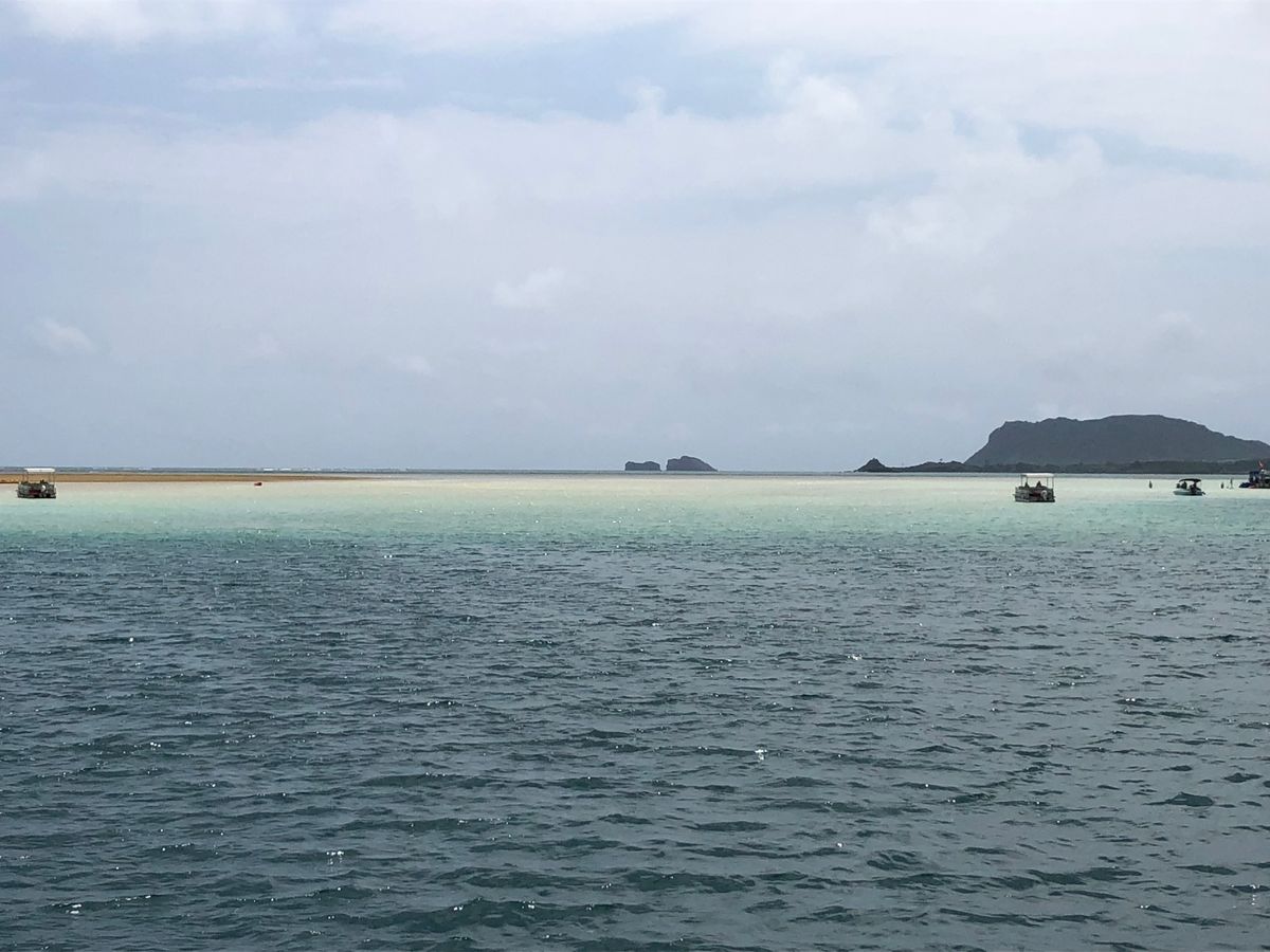 We were on the mixed boat, but it was reassuring to have Japanese staff members on board. The tide was a bit high that day, so we couldn't see the sandbar, and the water level was about waist-deep. If you want to see a sandbar like in the photos, I recommend researching in advance. Here, you can stand, so we practiced snorkeling, but you can also play volleyball.
