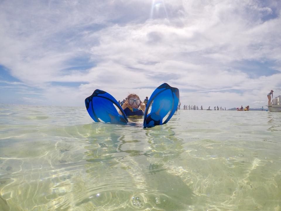 The sandbar had water up to my waist to chest due to the tides, but I still enjoyed walking around. It was great to practice snorkeling as well.