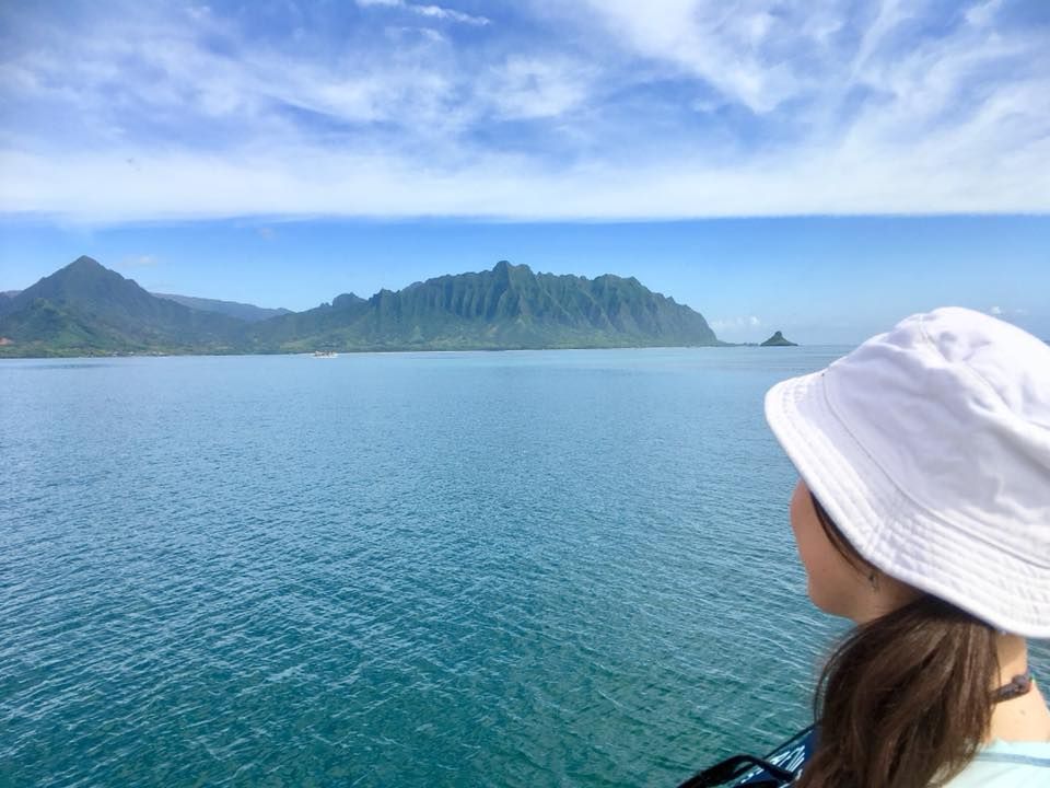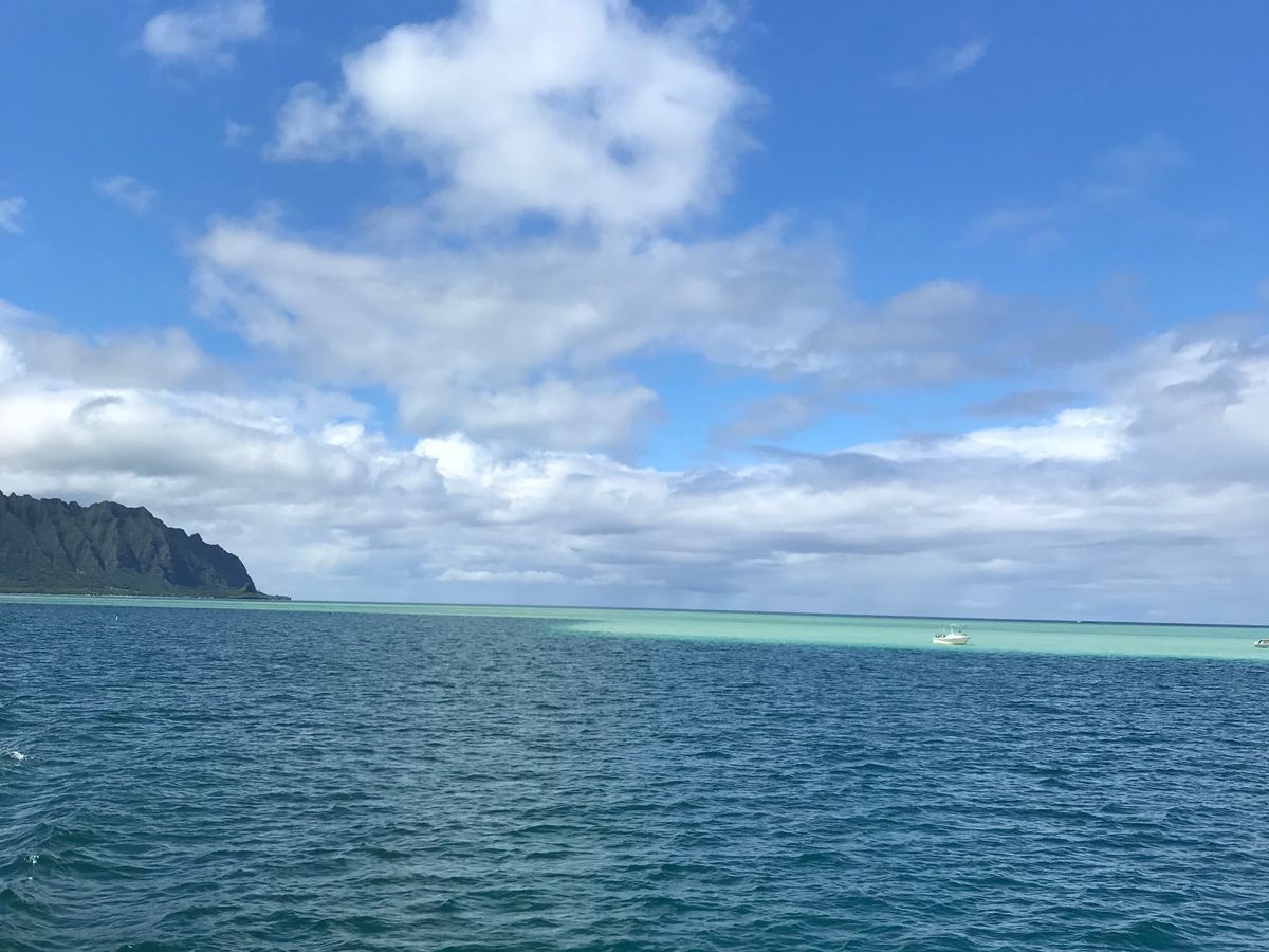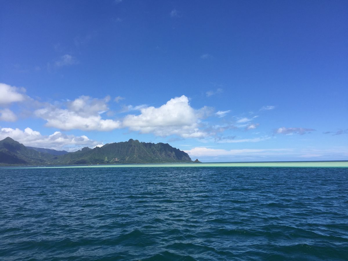 The day started with a bus picking us up from Waikiki to get to Kaneohe Bay. It was short 25 min drive to get there. Once we got off the bus, we headed over to the boat area to join the crew. A tour guide (both Eng and Jpn) was present to walk us through the process the whole time. She walked us through some safety cautions and basic procedures, and the whole crew was very pleasant to be around the whole time.