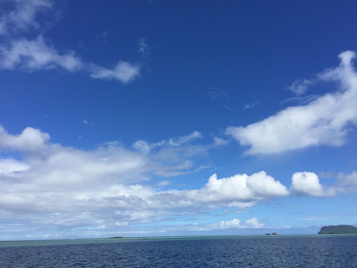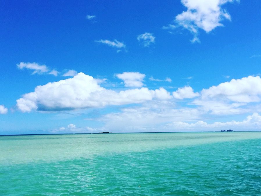 サンゴの砂で浅瀬になっている部分の「白さ」と深い海となっている所の「碧さ」のコントラストがとても綺麗で、最高です。
