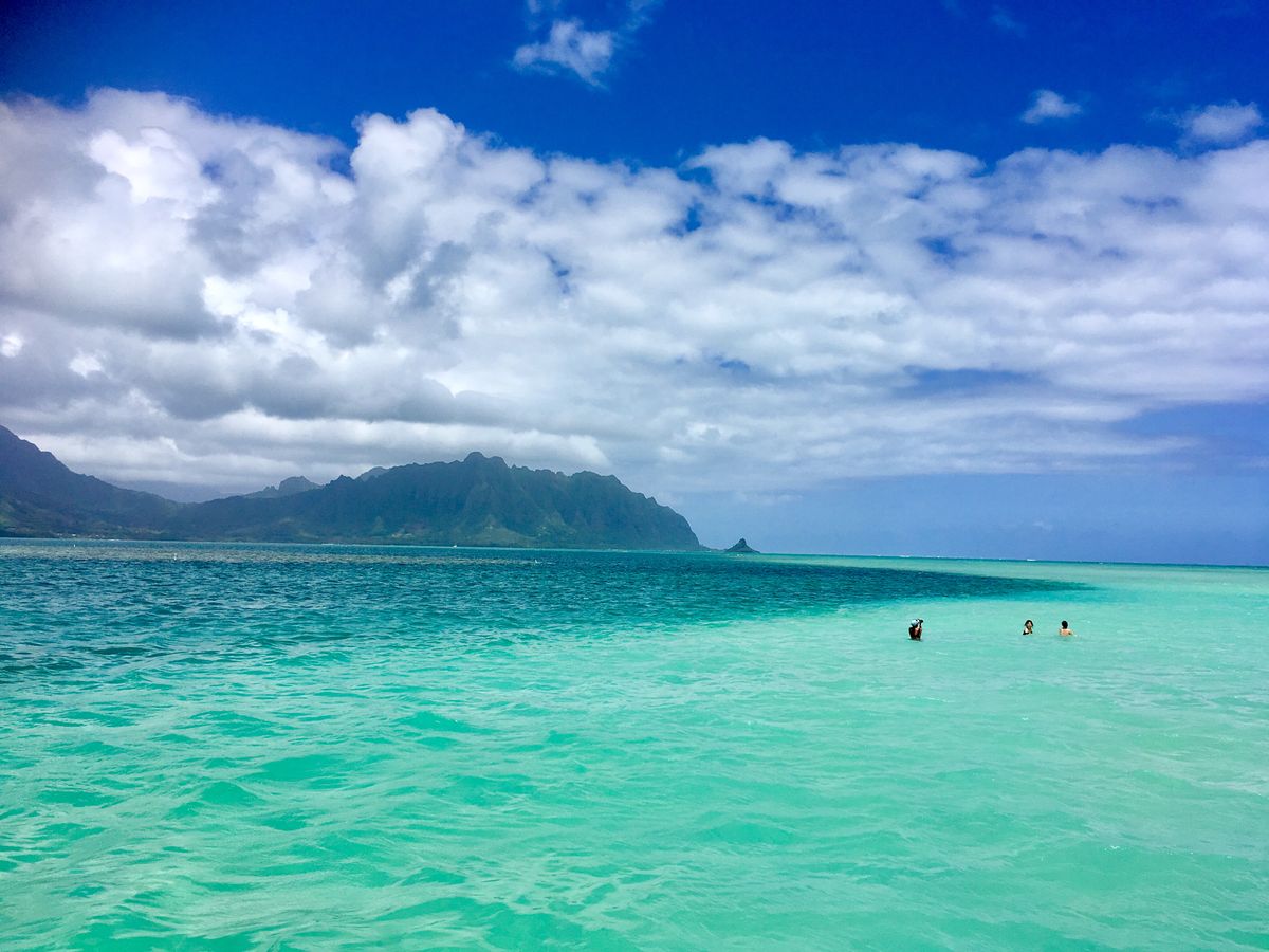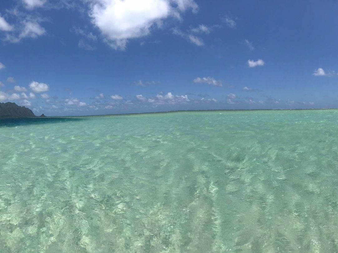 The sea of Lanikai, also known as the "Heavenly Sea," was incredibly beautiful. The emerald green areas turn into sandbars during low tide, revealing sandy beaches if the timing is right. If you want to see the beach, you need to check the low tide schedule and join a tour accordingly.