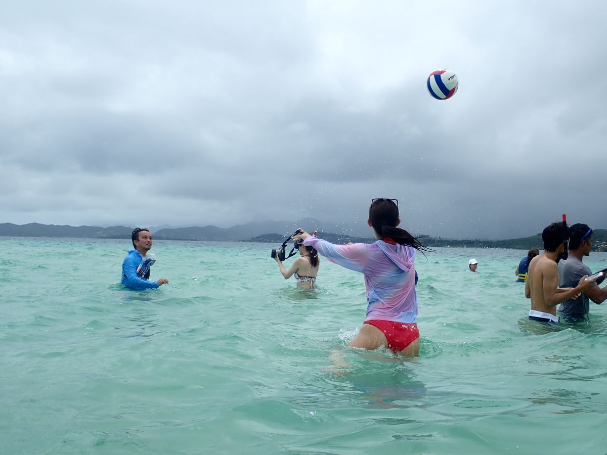 This is my second time on this tour. The staff was the same as last time. Their way of getting everyone excited is the best. Depending on the season, the sandbar was about chest height this time, which was a bit disappointing. When it started to rain, it lasted longer than usual, and the water clarity was lower, but I was able to see several turtles. The hamburger for lunch had a delicious patty. Playing beach volleyball with everyone was incredibly fun. My daughter was happy to take pictures of the many fish around the coral with her beach camera. I rate it one point lower because of the weather. I would like to participate again.